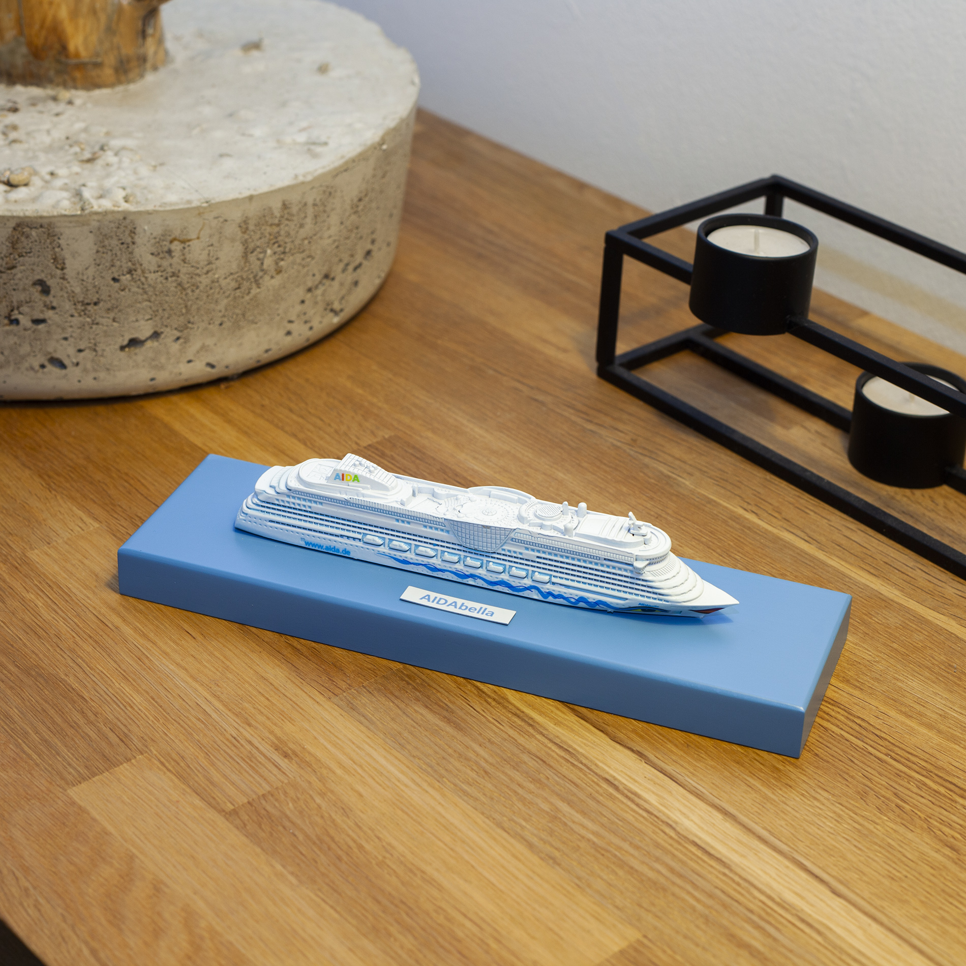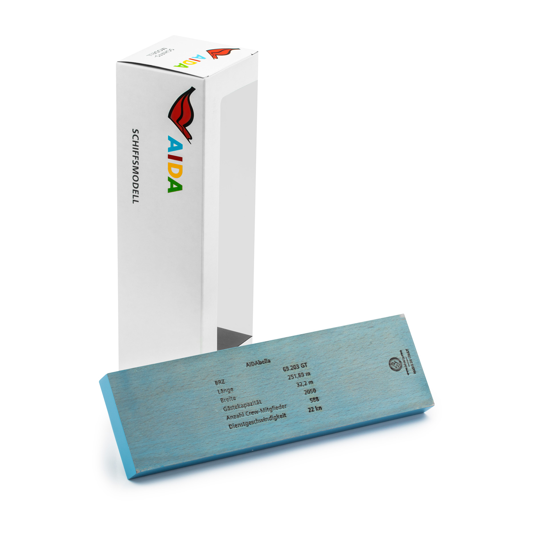 Die hochwertigen Modellschiffe (weiß) der AIDA Edition im Maßstab 1:1.400 werden durch Handarbeit mit den typischen AIDA Merkmalen wie Kussmund und Augen veredelt. Die Modelle stellen eine perfekte Erinnerung für Ihren einmaligen Traumurlaub oder ein tolles Geschenk zur Vorfreude auf die nächste Reise mit AIDA dar.
