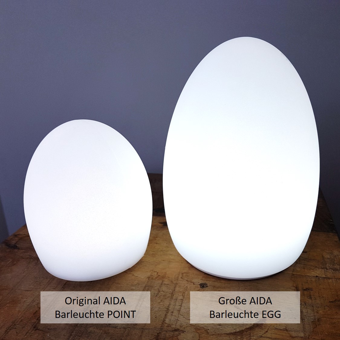 Im Gegensatz zum POINT Modell besitzt das EGG Modell zusätzlich eine Helligkeitseinstellung in drei Stufen! Anstatt 20 hat es außerdem 35 LEDs, welche mehr als 120 Lumen bringen! Zusätzlich ist das EGG Modell mit 16x21cm wesentlich größer und heller als die Barleuchte POINT mit 12x14cm!