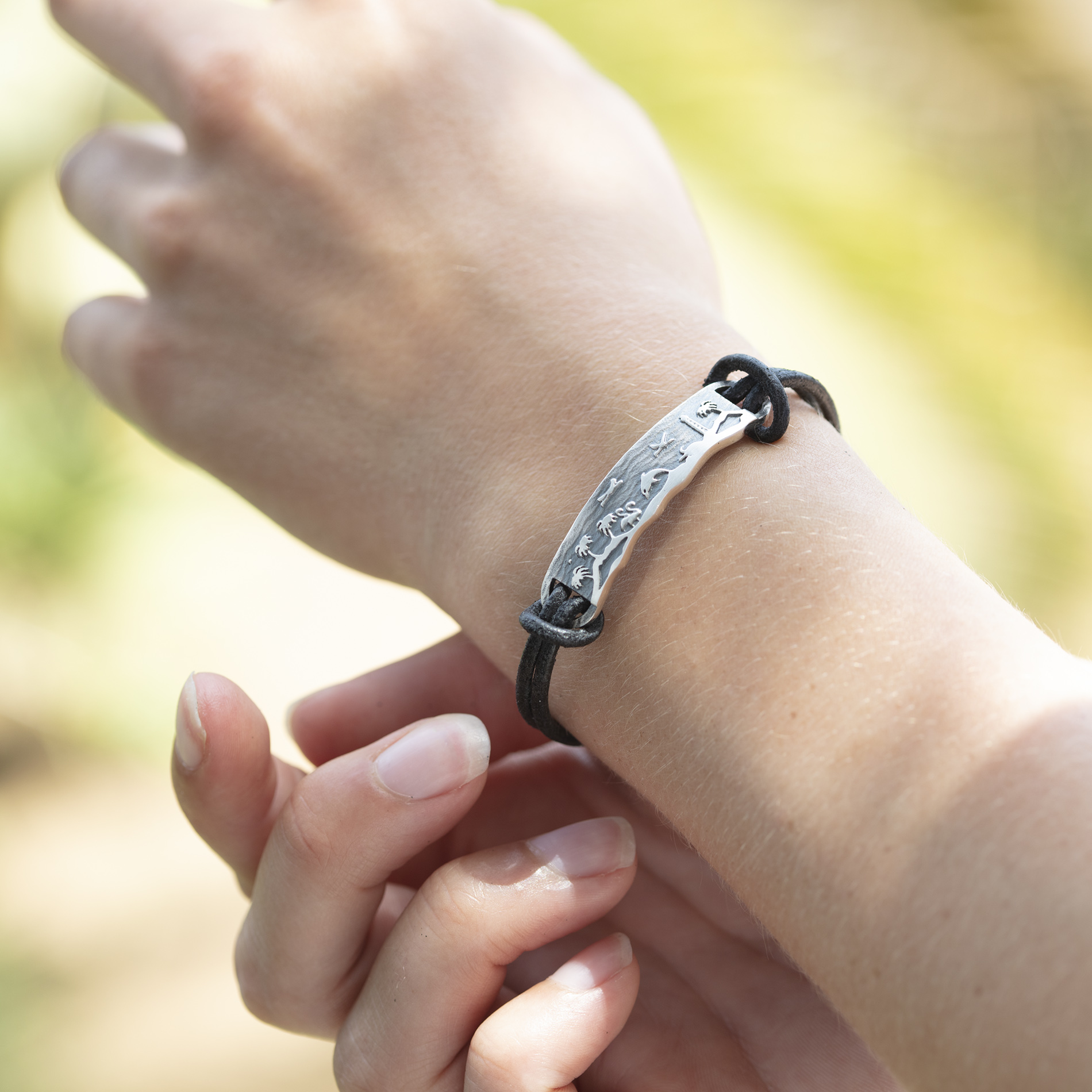 - 925er Sterling-Silber mit gewachstem Baumwollband (Achtung: Produktabbildung ist mit Lederband. Dieses steht nicht mehr zur Verfügung)