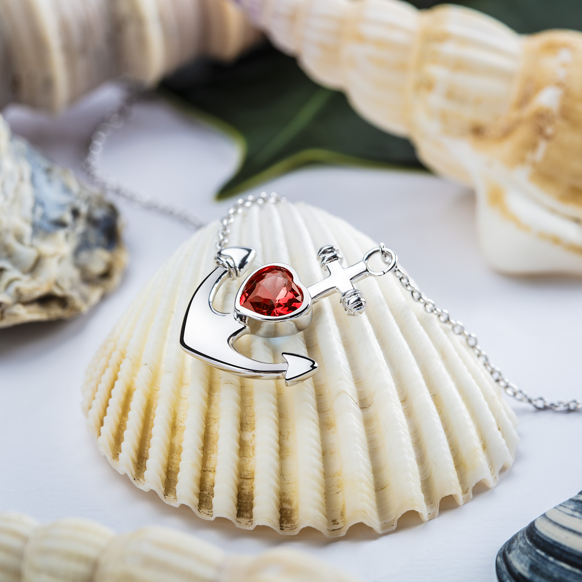 Kette aus Silber mit Anker und Zirkoniastein in rot